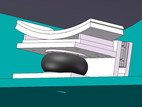由電動(dòng)推桿,關(guān)節(jié)軸承等件組成,可以方便的將車輛舉升并對(duì)中至轉(zhuǎn)鼓的高點(diǎn),該機(jī)構(gòu)共有四套,其結(jié)構(gòu)如上圖。