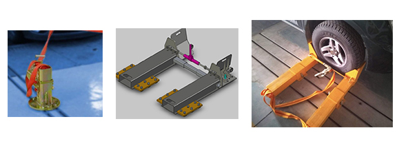 能限制車輛橫向和縱向的移動(dòng)≤±12.7mm,且不應(yīng)使試驗(yàn)車輛的驅(qū)動(dòng)輪產(chǎn)生附加的正應(yīng)力,并能適應(yīng)不同車輛的安裝。